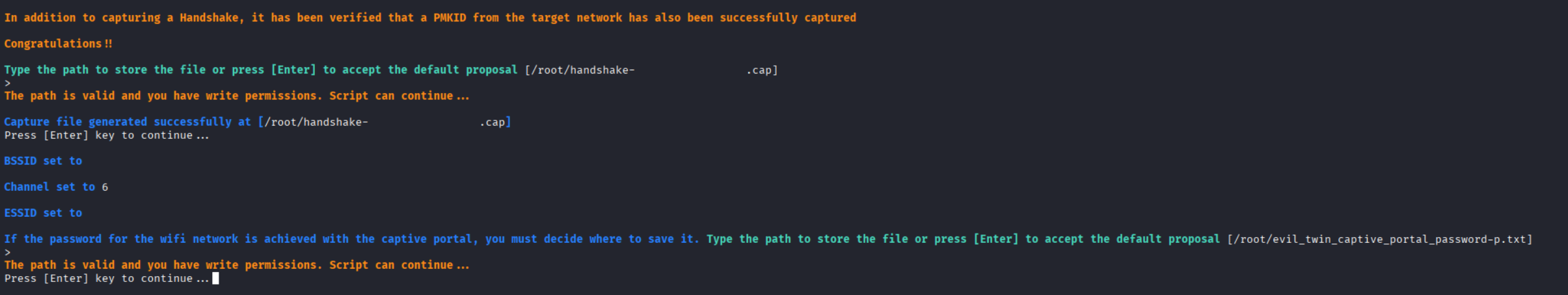 After the handshake capture file with deauthentication has been obtained, a rogue AP will be established with the captive portal.